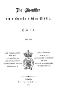 Title: Die Chroniken der Deutschen Städte: T. 12. Bd. 1. Cöln