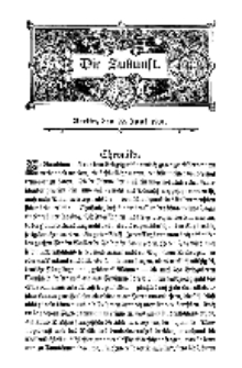 Niemiecki tygodnik pod redakcją pisarza, publicysty, krytyka literackiego i aktora Maximiliana Hardena (1861-1927) (właściwie M. Felix Ernst Witkowski). Czasopismo zawierało eseje na temat polityki, sztuki, historii, społeczeństwa. Znamienny był już sam tytuł tygodnika („Przyszłość”). Harden był kontrowersyjnym i często nieprzejednanym w swoich opiniach publicystą, a periodyk służył mu jako platforma do wyrażania swoich przekonań na tematy tak aktualne, jak i historyczne (jest on autorem wielu zamieszczonych w „Die Zukunft” przyczynków). Harden udostępniał łamy swojego czasopisma także wyrazicielom bardzo postępowych i liberalnych na owe czasy poglądów, m.in. bojowniczce o prawa kobiet i reformę życia seksualnego Helene Stöcker. Zakres tematyczny czasopisma był niezwykle szeroki – w jednym z numerów posiadanych przez Bibliotekę Elbląską znajduje się artykuł poświęcony Adamowi Mickiewiczowi (warto przy tej okazji wspomnieć, iż Harden był jednym z niewielu Niemców, także wśród intelektualistów, którzy popierali narzucone Niemcom na mocy traktatu wersalskiego ciężkie warunki pokojowe, gdyż był on przekonany o winie Niemiec za wybuch I wojny światowej). W miarę radykalizowania się nastrojów społecznych w Republice Weimarskiej czasopismo „Die Zukunft” traciło czytelników. Sam Harden został 3 lipca 1922 r. napadnięty i poraniony przez członków „Freikorps” – miało to miejsce na kilka dni przed zamachem na ministra Walthera Rathenaua, który był zresztą przyjacielem Hardena. W zbiorach Biblioteki Elbląskiej znajdują się numery tygodnika z lat 1897-1922, obejmujące prawie cały okres wydawania periodyku (bez pierwszych pięciu lat).