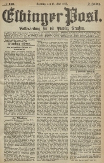 | 1875-05-16, Elbinger Post, Nr. 112, Sonntag 16 Mail 1875, 2 Jh | Oct 22, 2018 |