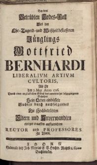 Title: Bey dem [...] Jünglings Gottfried Bernhardi liberarium atrium cultoris [...]