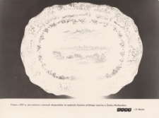 Autor zdjęcia : KAW - D. Bocian, W: Miesięczna Kronika Fotograficzna : województwo elbląskie – marzec – 1980 r. (Nr 3/80). Gdańsk, Wydaw.: Krajowa Agencja Wydawnicza. Redaktor wydania: Ewa Jurkowska. Format: 27,9 x 20,9 cm. W zamku Malborskim zorganizowano wystawę fajansu polskiego, jednym z eksponatów jest patera z XVII wieku.