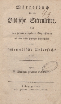 Title: Wörterbuch über die Biblische Sittenlehre, das von jedem einzelnen Gegenstande mit allen dahin gehörigen Schriftstellen eine systematische Uebersicht giebt