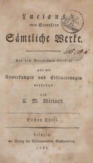 Tytuł: Lucians von Samosata Sämtliche Werke. Aus dem Griechischen übersetzt und mit Anmerkunkungen und Erläuterungen versehen von C. M. Wieland. Erster Theil