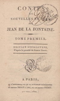 Contes et nouvelles en vers par Jean de La Fontaine (Paryż, 1800) - pierwszy tom zbioru frywolnych powiastek i opowiadań, których autorem jest francuski poeta i bajkopisarz, jeden z czołowych przedstawicieli klasycyzmu francuskiego, od 1684 roku członek Akademii Francuskiej - Jean de La Fontaine (1621-1695). Wszechstronność talentu literackiego La Fontaine’a sprawiła że uprawiał rozmaite gatunki i formy literackie, łączył wiersz i prozę, wiersz regularny i nieregularny etc. Choć dla potomnych pozostał przede wszystkim autorem bajek to rozgłos i pierwsze sukcesy literackie odniósł dzięki niniejszym „Contes…”, które zostały opublikowane po raz pierwszy w trzech częściach, w okresie 1665 - 1671. Inspirację dla zbioru opowiadań stanowiły francuskie i włoskie dzieła, w tym m.in. utwory takich twórców jak Giovanni Boccaccio (1313-1375) czy Ludovico Giovaniii Ariosto (1474-1533) oraz starofrancuskie fabliaux. Powiastki la Fontaine’a określane były jako wyuzdane, rozwiązłe, bezczelne, złośliwe, erotyczne, sprośne a nawet zadziorne. Nawiązywał w nich do starej tradycji literackiej, ale robił to na swój sposób, przekształcając szorstkie historie w bardziej wyrafinowane dzieła. Dbał o to, by obierać drogi, wysuwać sugestie i ukrywać swoje słowa, aby uczynić je bardziej zabawnymi.