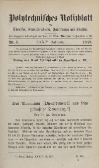 Title: Polytechnisches Notizblatt für Chemiker, Gewerbtreibende, Fabrikanten und Künstler, XXXIV Jahrgang, No.3