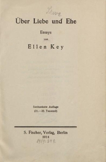 | 1914, Key, Ellen, Über Liebe und Ehe. Essays von Ellen Key | Feb 17, 2023 |