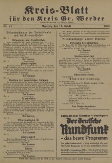 Title: Kreis - Blatt für den Kreis Gr. Werder, 1929, Nr.15